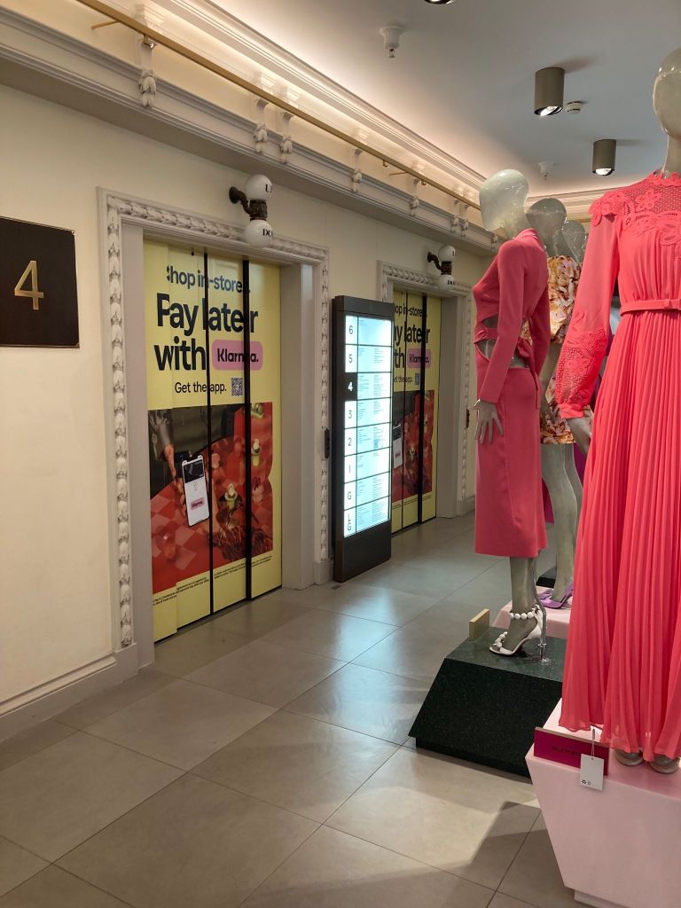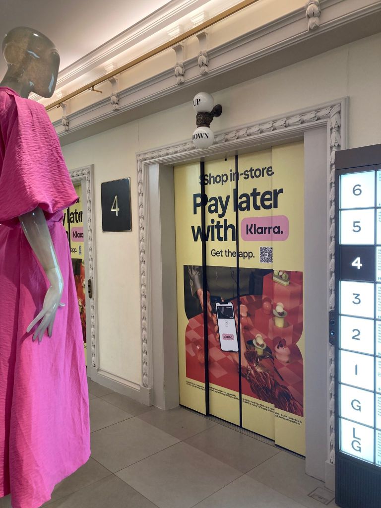 Creative work for Klarna at Harrods & H–Beauty. Campaign displayed on big digital screens all across this iconic store located in the heart of London. Animation variations created for 10+ different sizes, lift-wraps, security-wraps, stickers and more.