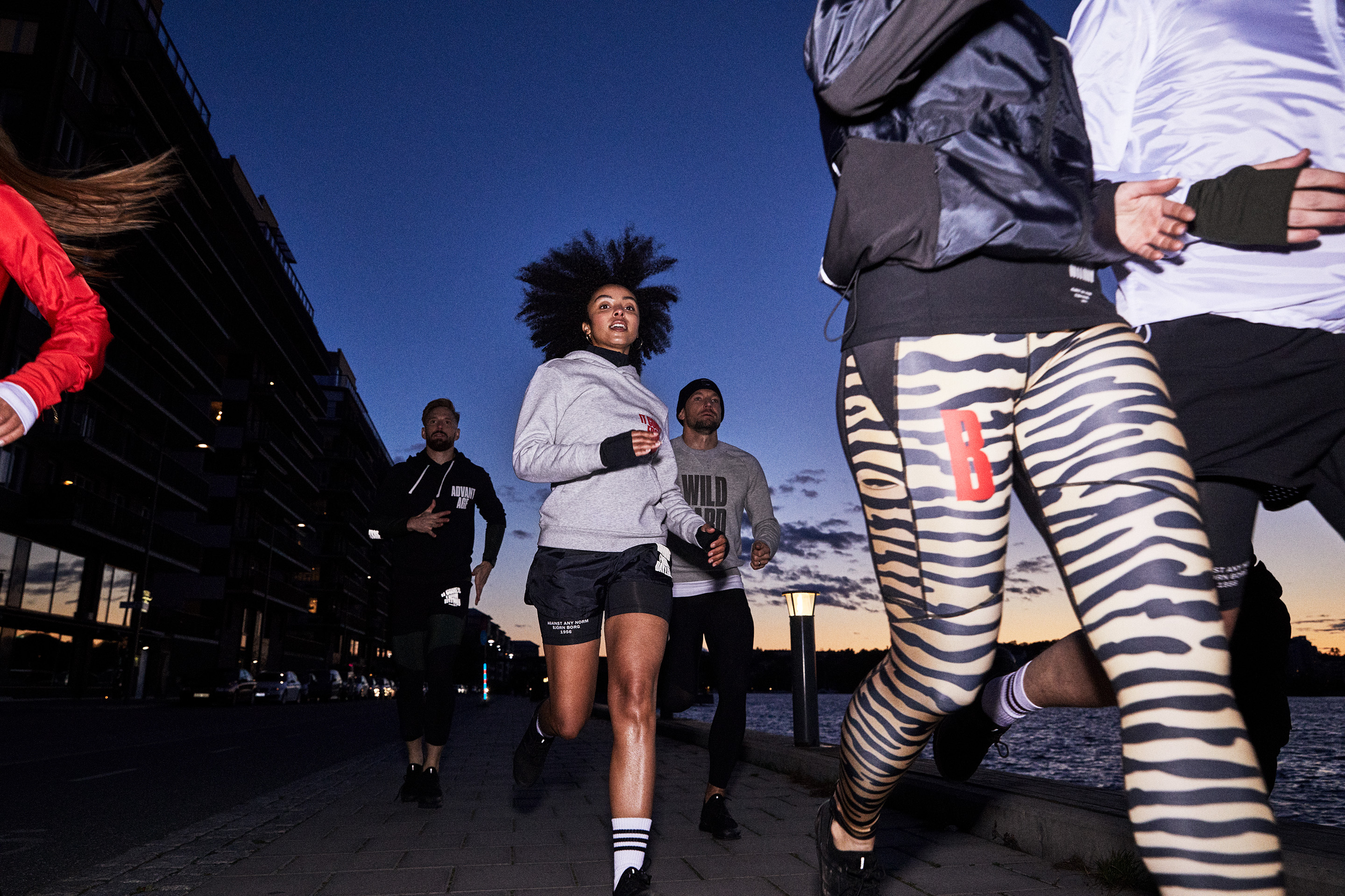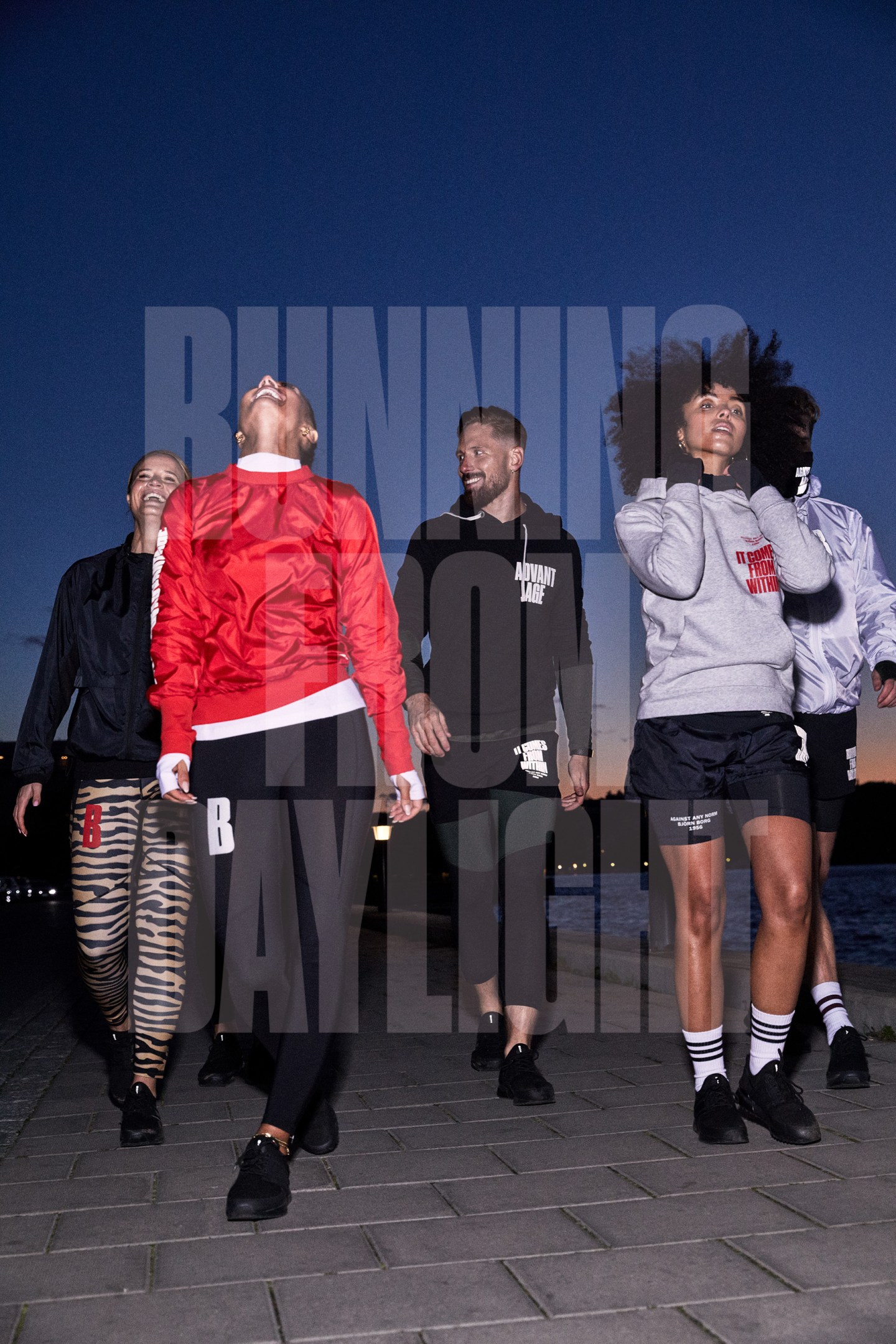 The Running from daylight collection is designed using words and graphics, all taken from the Björn Borg’s core identity. Using the design to communicate what the brand believes and their wish is to inspire people to reach their full potential. A collection designed for training on dark fall days. That salutes the darkness in Sweden during the fall where you run from the short moments of daylight into the darkness. All graphics are done in are reflective print to make sure you are safe in the traffic.